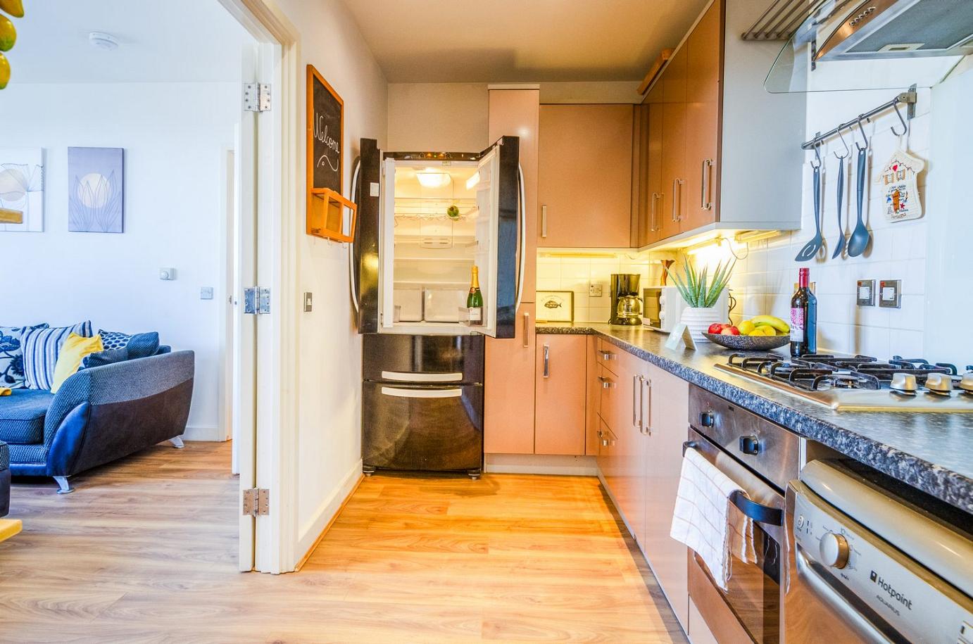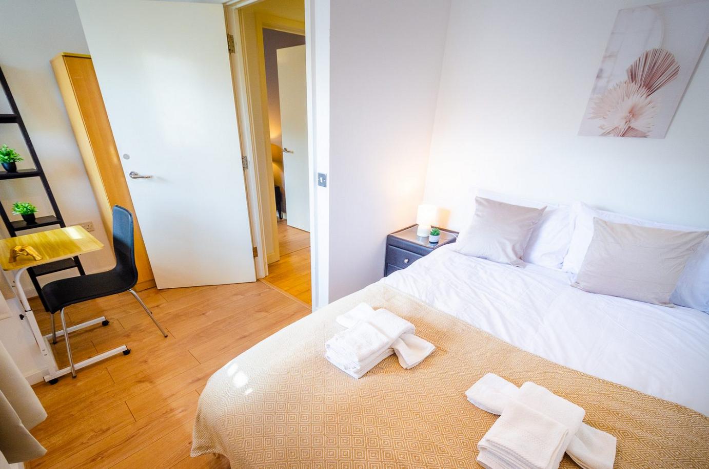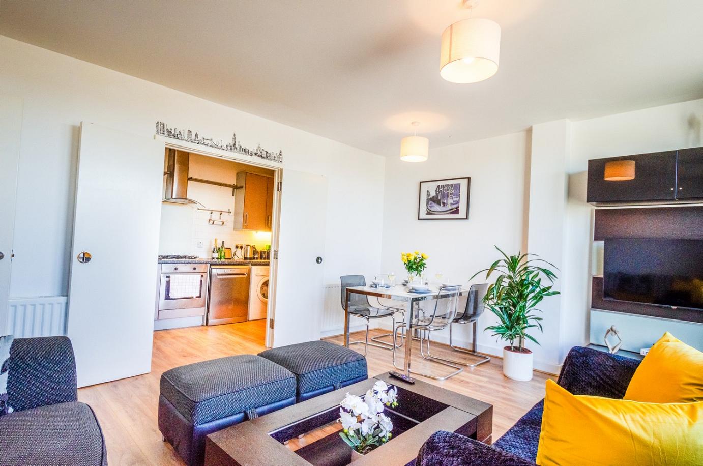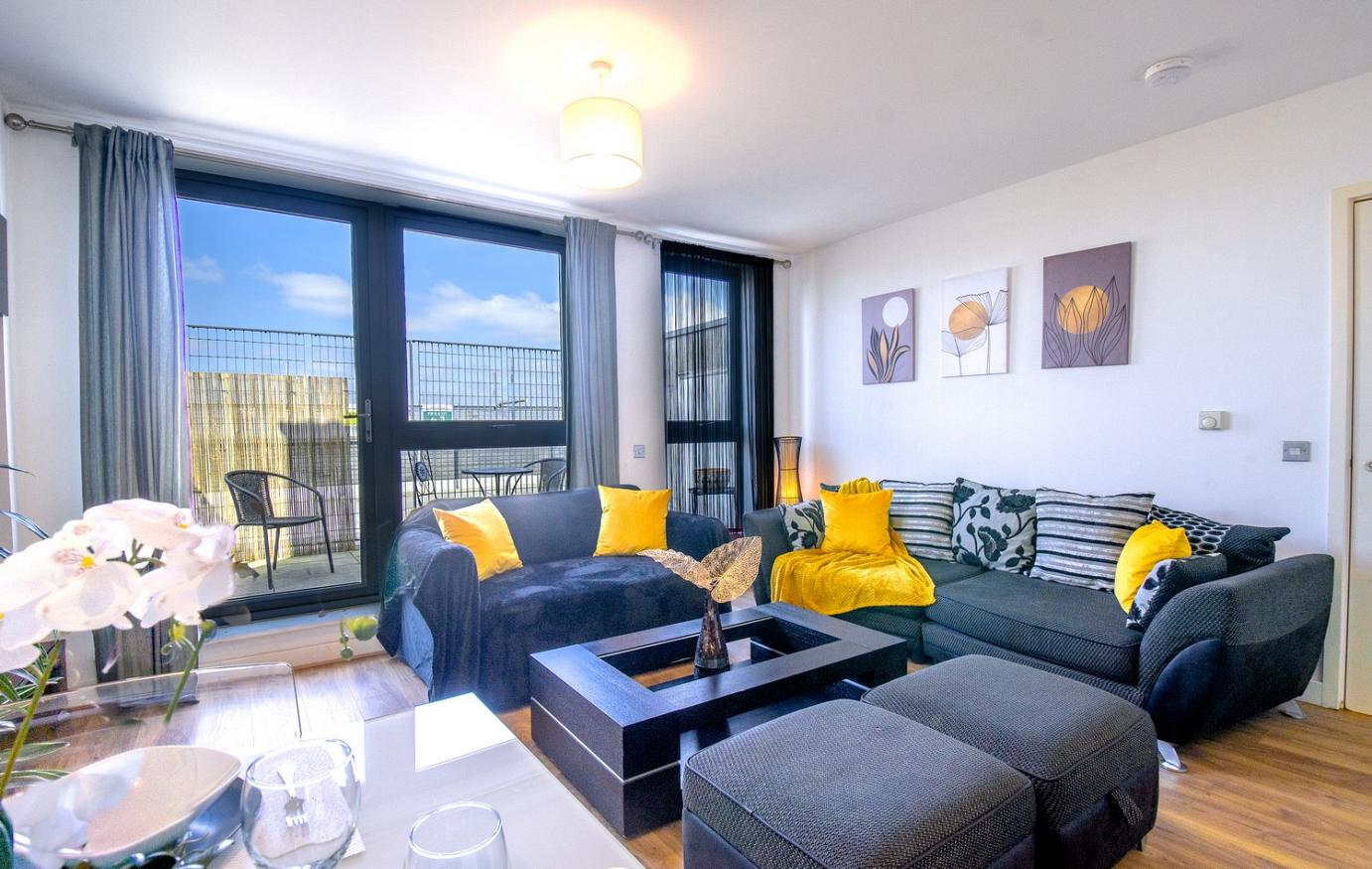 Experience comfort in this beautifully renovated 2-bedroom top-floor apartment with Sofa bed in Canning Town. Wake up to breathtaking city views and unwind in a modern, stylish space complete with your own private patio.